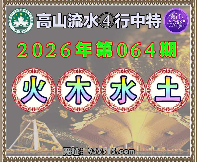 064期:〖高山流水〗 🧏‍♀️④行中特🧏‍♀️【.木.水.土】开:火18