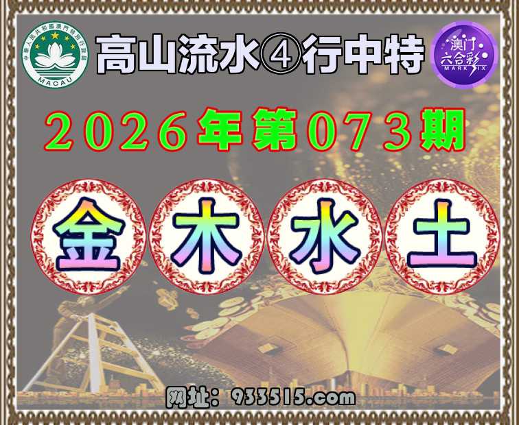 073期:〖高山流水〗 🧏‍♀️④行中特🧏‍♀️【.木.水.土】开:金34