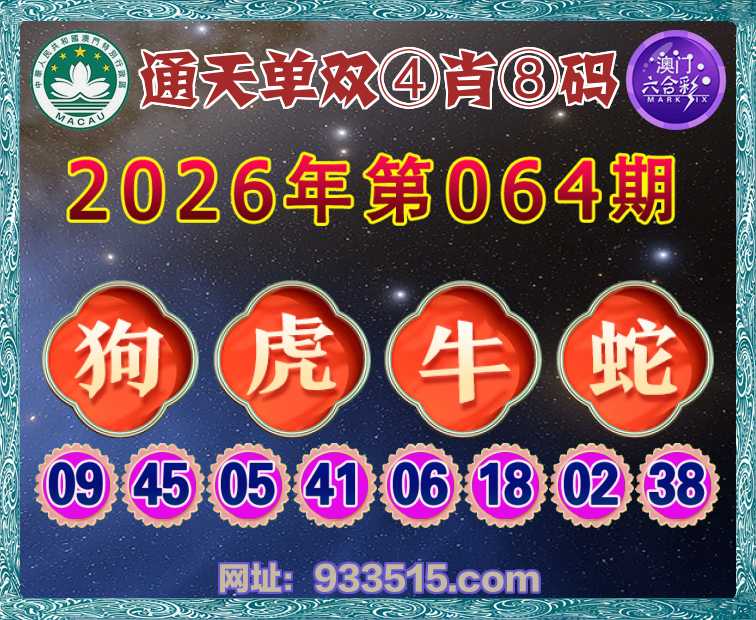 064期:『通天单双』 🏆④肖⑧码🏆【狗虎蛇】开:牛18