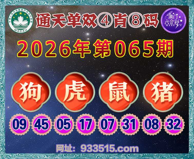 065期:『通天单双』 🏆④肖⑧码🏆【狗鼠猪】开:虎05