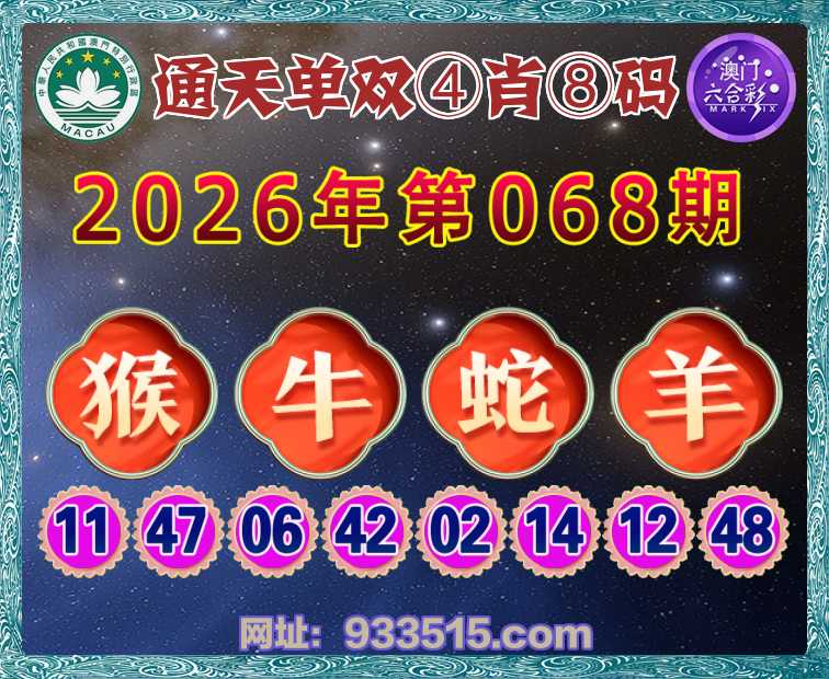 068期:『通天单双』 🏆④肖⑧码🏆【牛蛇羊】开:猴23