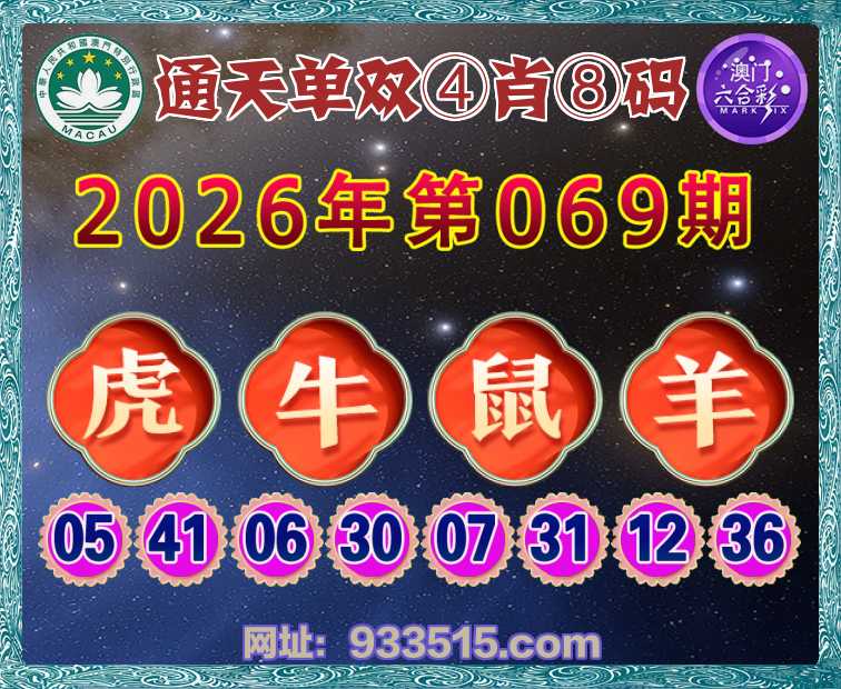069期:『通天单双』 🏆④肖⑧码🏆【虎牛鼠】开:羊24