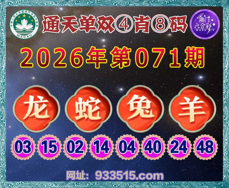 071期:『通天单双』 🏆④肖⑧码🏆【龙蛇兔】开:羊48