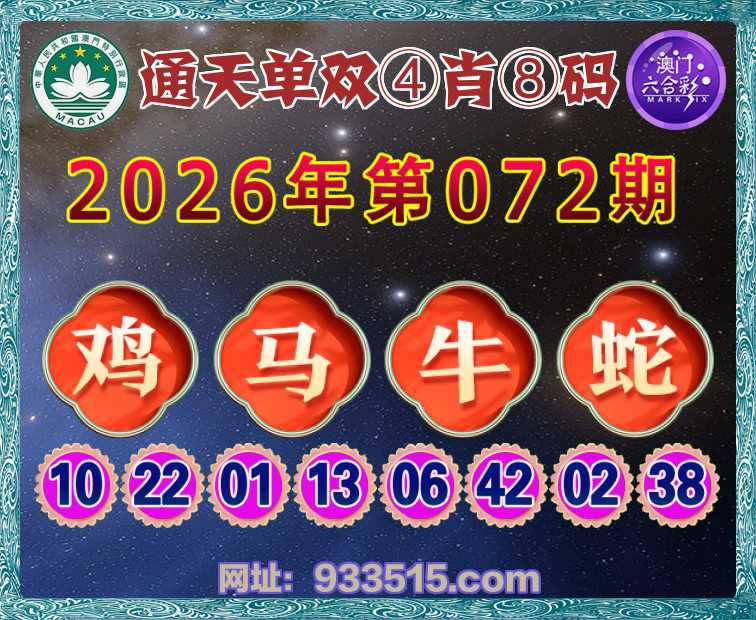 072期:『通天单双』 🏆④肖⑧码🏆【马牛蛇】开:鸡46