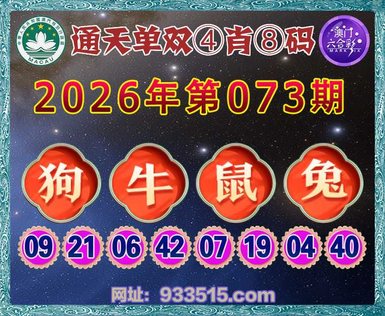 073期:『通天单双』 🏆④肖⑧码🏆【狗牛鼠兔】开:鸡34