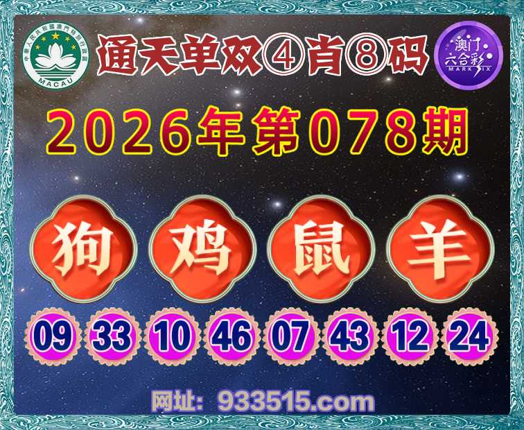 078期:『通天单双』 🏆④肖⑧码🏆【狗鼠羊】开:鸡46