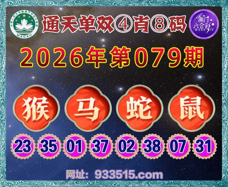 079期:『通天单双』 🏆④肖⑧码🏆【马蛇鼠】开:猴35