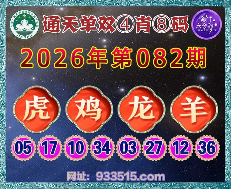 082期:『通天单双』 🏆④肖⑧码🏆【虎鸡龙羊】开:00准